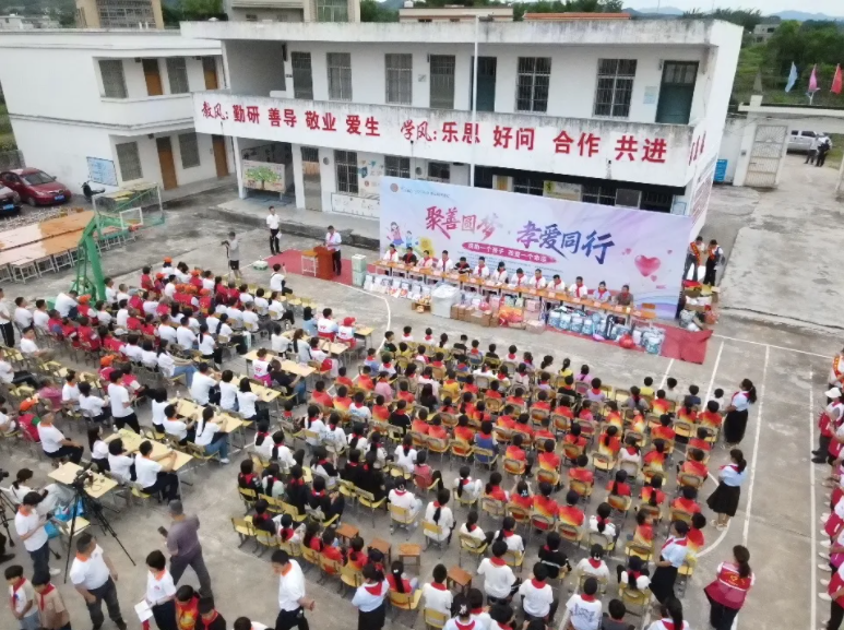 在《感恩的心》的余韻中,主持人宣布:“‘聚善圓夢,孝愛同行’——廣西桂平東石小學(xué)愛心助學(xué)活動圓滿結(jié)束!”