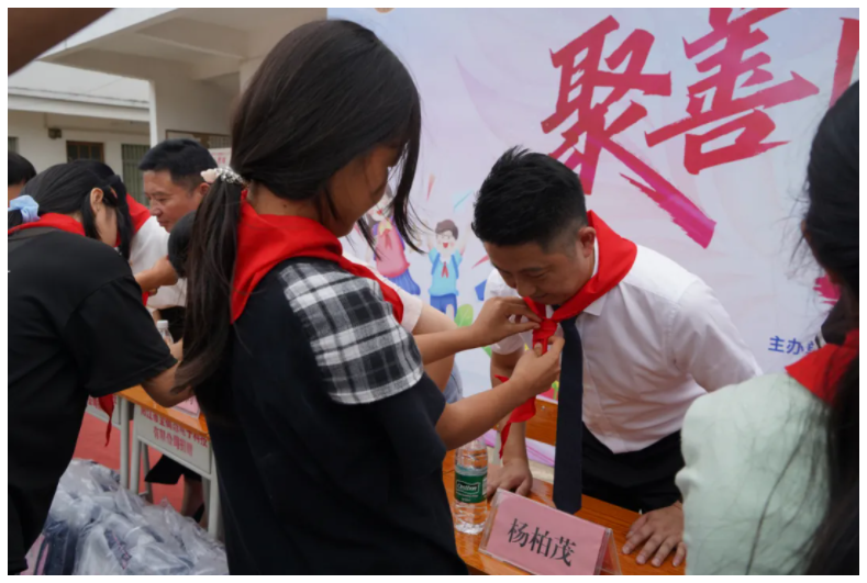 這一刻,紅色格外耀眼。紅領(lǐng)巾與嘉賓們胸前的愛心徽章交相輝映,仿佛一條無形的紐帶,將社會的關(guān)愛與孩子們的未來緊緊相連。