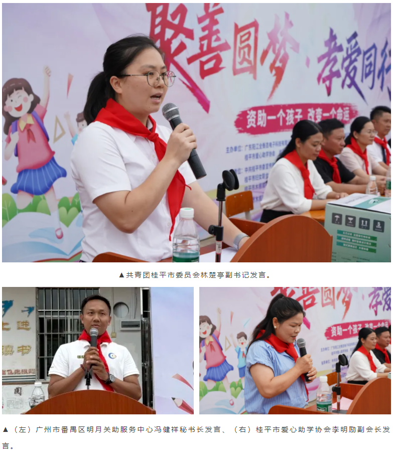 隨后,廣州市番禺區(qū)明月關(guān)助服務(wù)中心馮健祥秘書長、桂平市愛心助學(xué)協(xié)會李明勵(lì)副會長、共青團(tuán)桂平市委員會林楚亭副書記相繼發(fā)言。他們高度贊揚(yáng)了全衡態(tài)公司的善行義舉,一致認(rèn)為企業(yè)的深度參與為公益注入了強(qiáng)大而持久的活力。