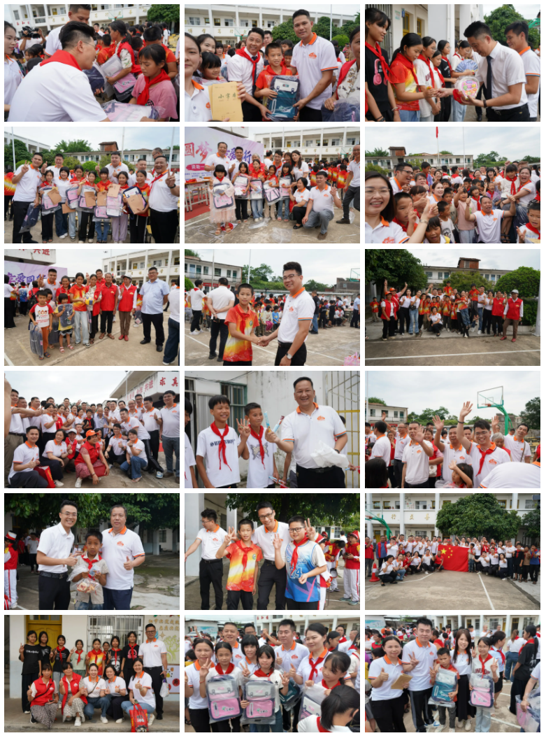他們彎下腰,帶著微笑,親手將書包遞到一個(gè)個(gè)孩子手中。接過書包的孩子們,迫不及待地背在身上,小臉上綻放出如六月陽光般燦爛、純凈的笑容。操場上瞬間變成了歡樂的海洋,驚嘆聲、歡笑聲此起彼伏。